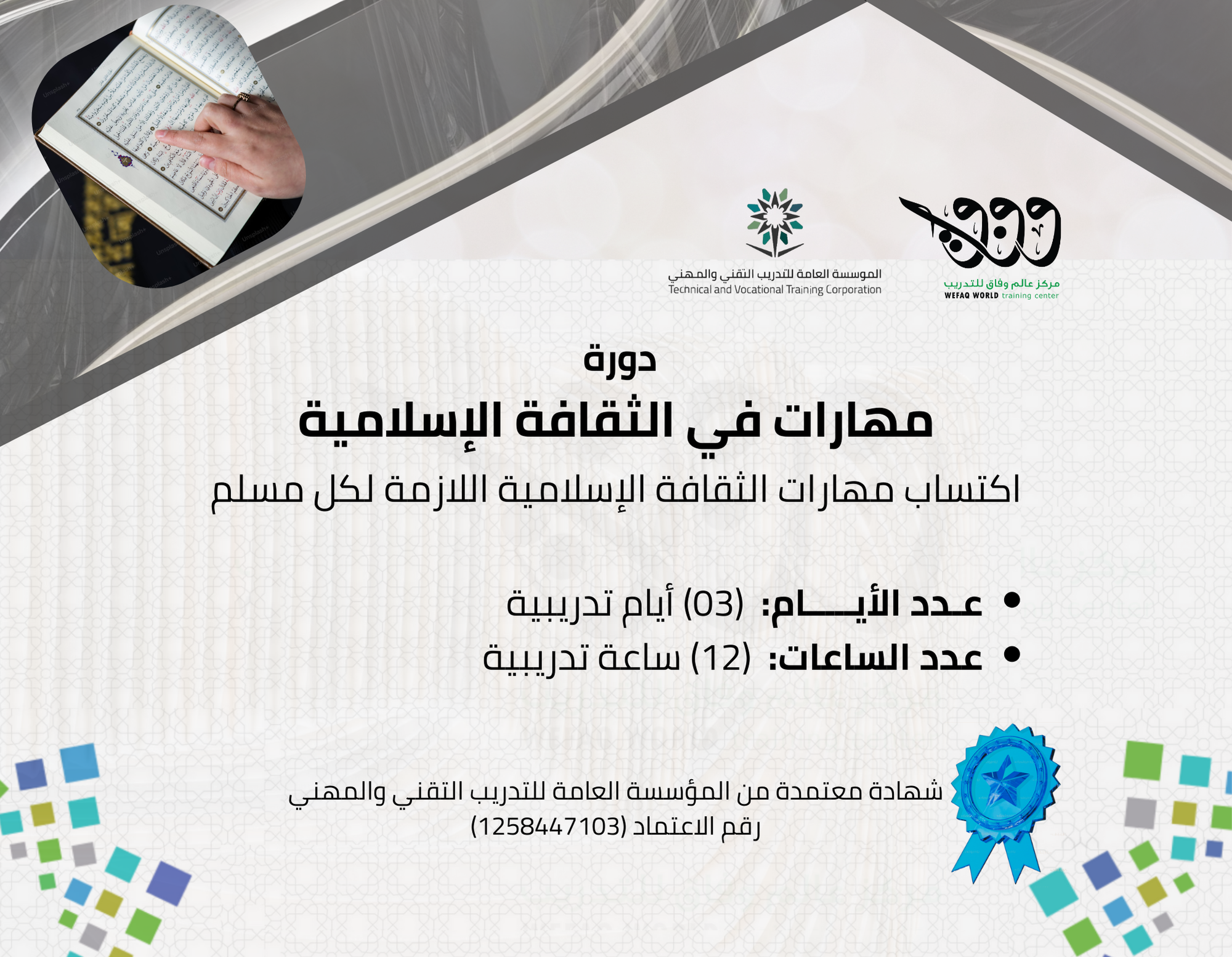 تهدف هذه الدورة إلى تعزيز وتنمية القيم الأخلاقية والاجتماعية من خلال القرآن الكريم باستخدام استرا