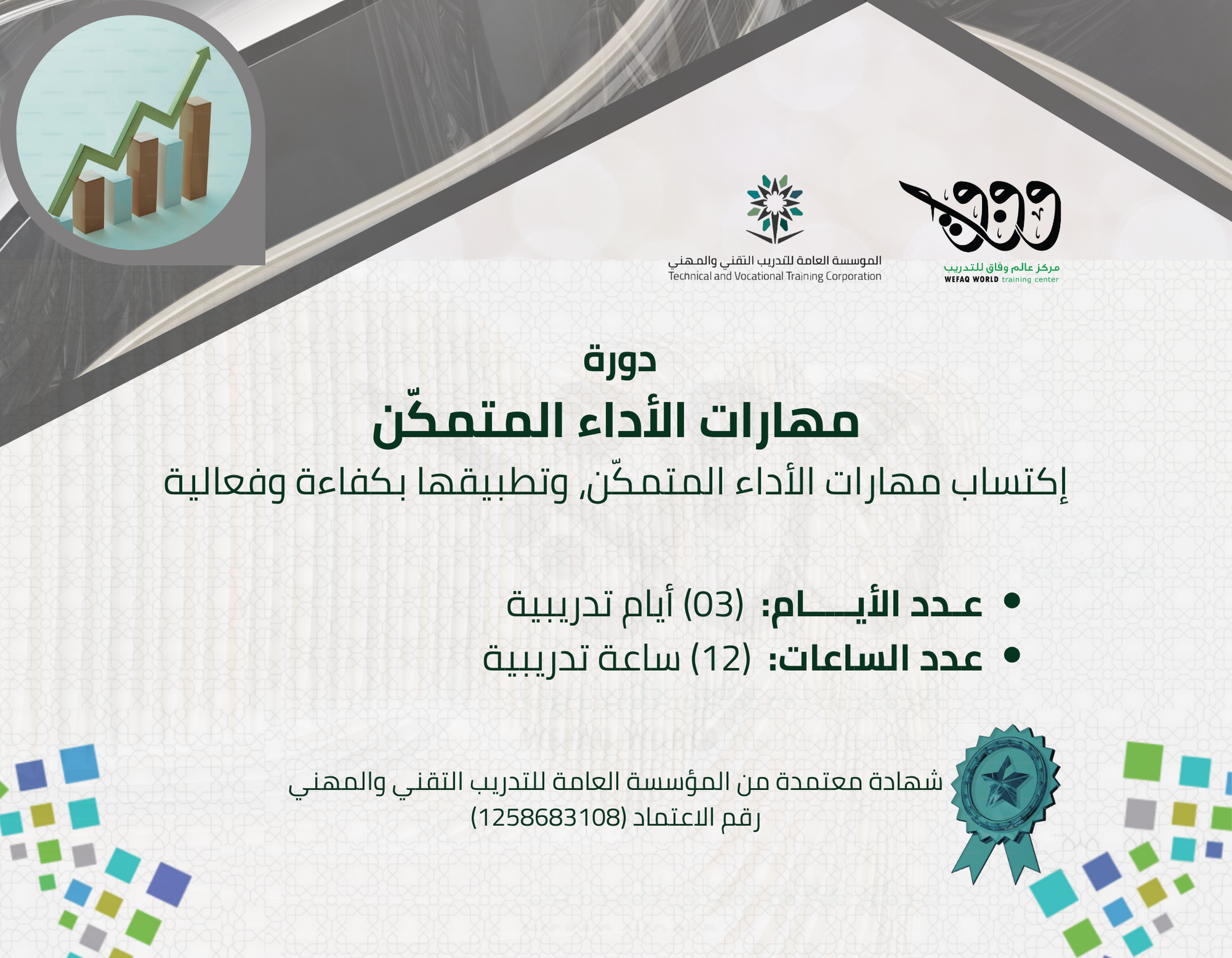تسهم هذه الدورة على إكساب المتدربين المهارات التدريبية اللازمة للأداء المتمكّن، وكيفية تطبيق هذه